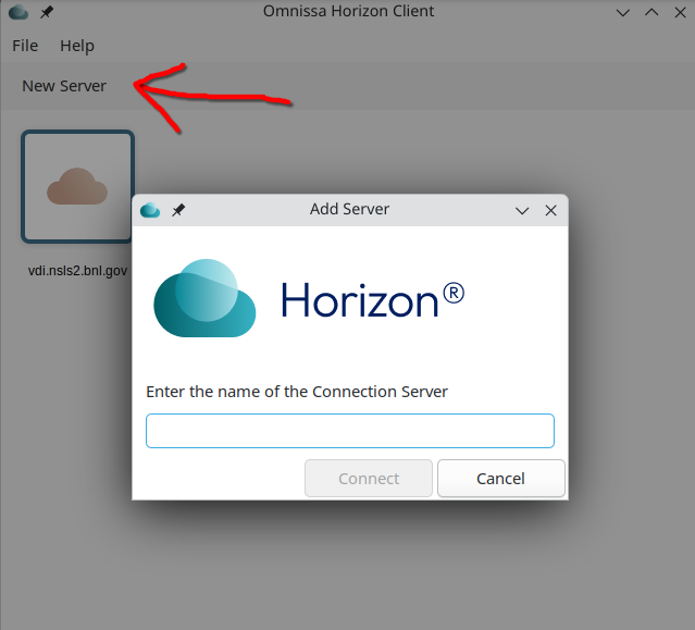Fig. 4.10 Once in the Omnissa app, click the “New Server” button and enter