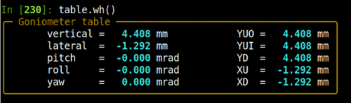The goniometer table physical and pseudo motors: